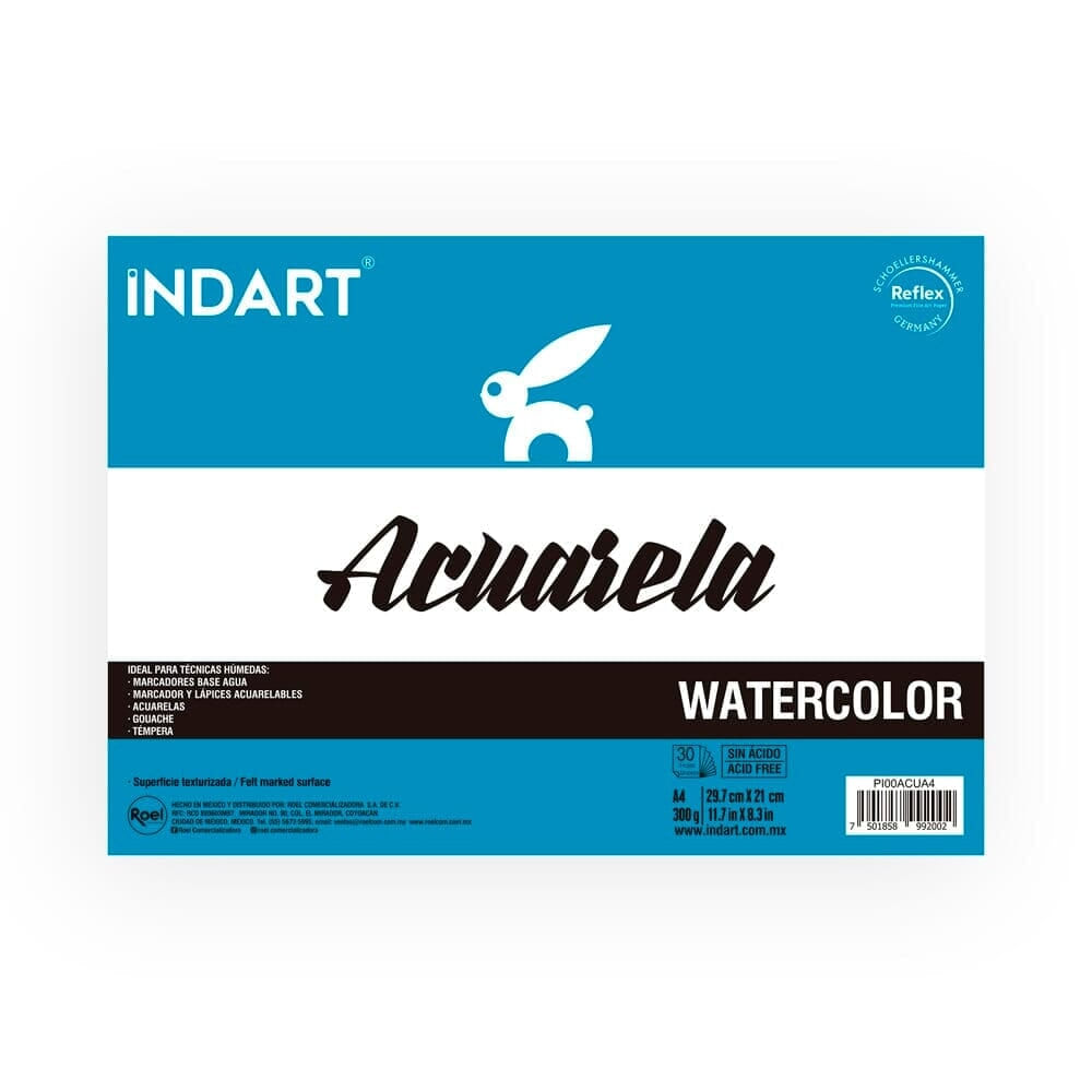 Bloc para Acuarela Indart Watercolor | 30 hojas | Tamaño A4 29.7x21cm