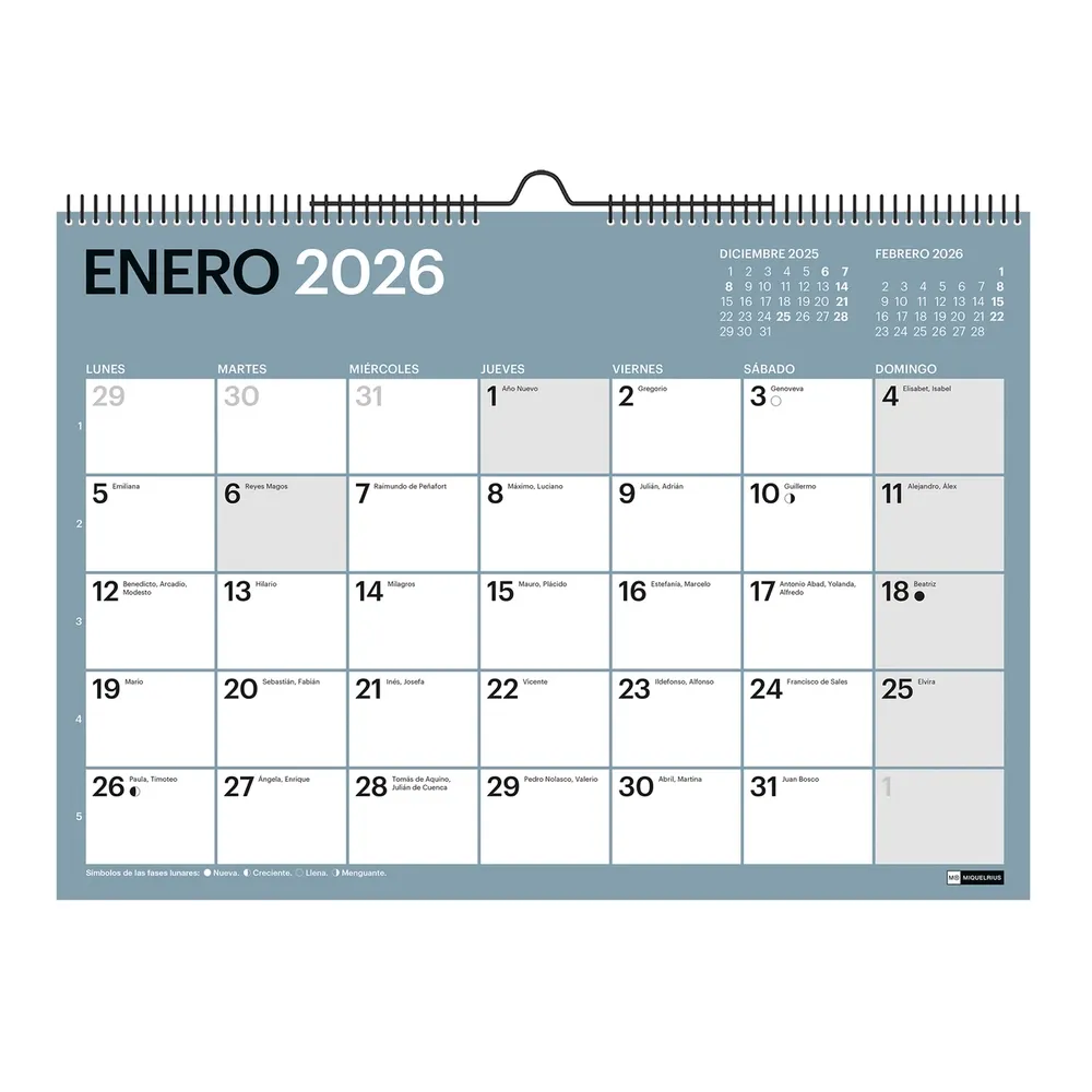 Calendario de pared 2026 Miquel Rius Chromat A4 con diseño cromático vibrante, espacio para notas, citas y recordatorios diarios, formato mensual, fácil de colgar, ideal para oficina, hogar o estudio, planificación práctica con estilo moderno y colorido que organiza tu año con energía y creatividad.