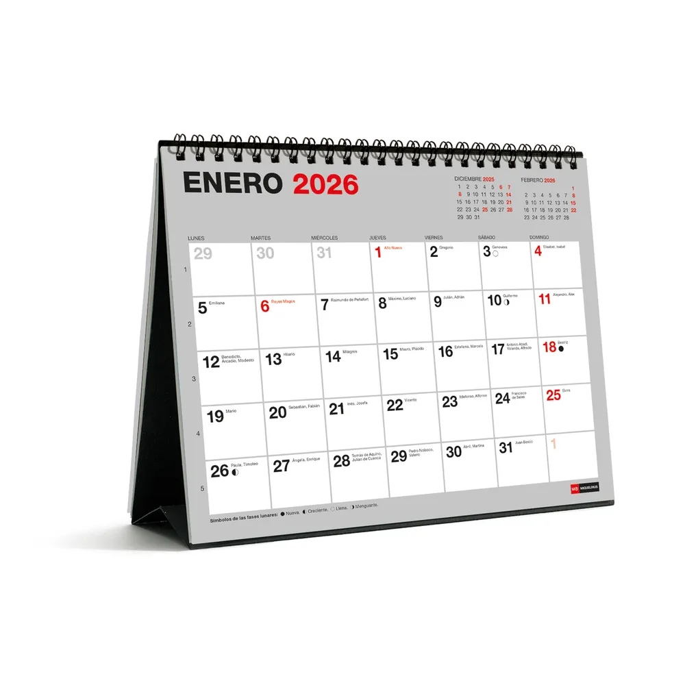Calendario de sobremesa 2026 Miquel Rius Basic 25x20cm con diseño práctico para escritura diaria, espacio amplio para notas, citas y recordatorios, numeración clara de días y semanas, formato mensual, ideal para escritorio, oficina o estudio, permite organizar tu año de manera eficiente con estilo minimalista.