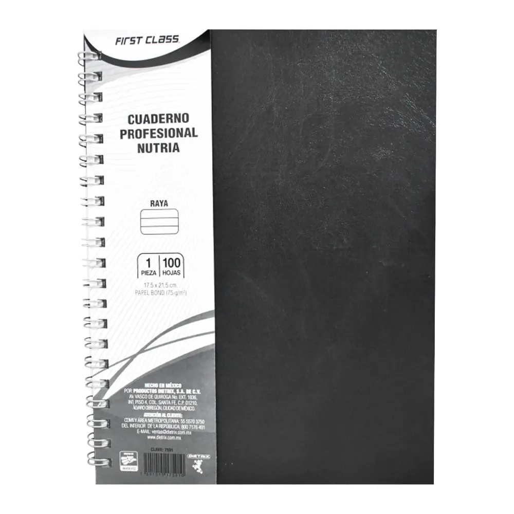 Cuaderno Engargolado Profesional Tapa Dura 100 Hojas 75g Raya Nutria Negro / Gris