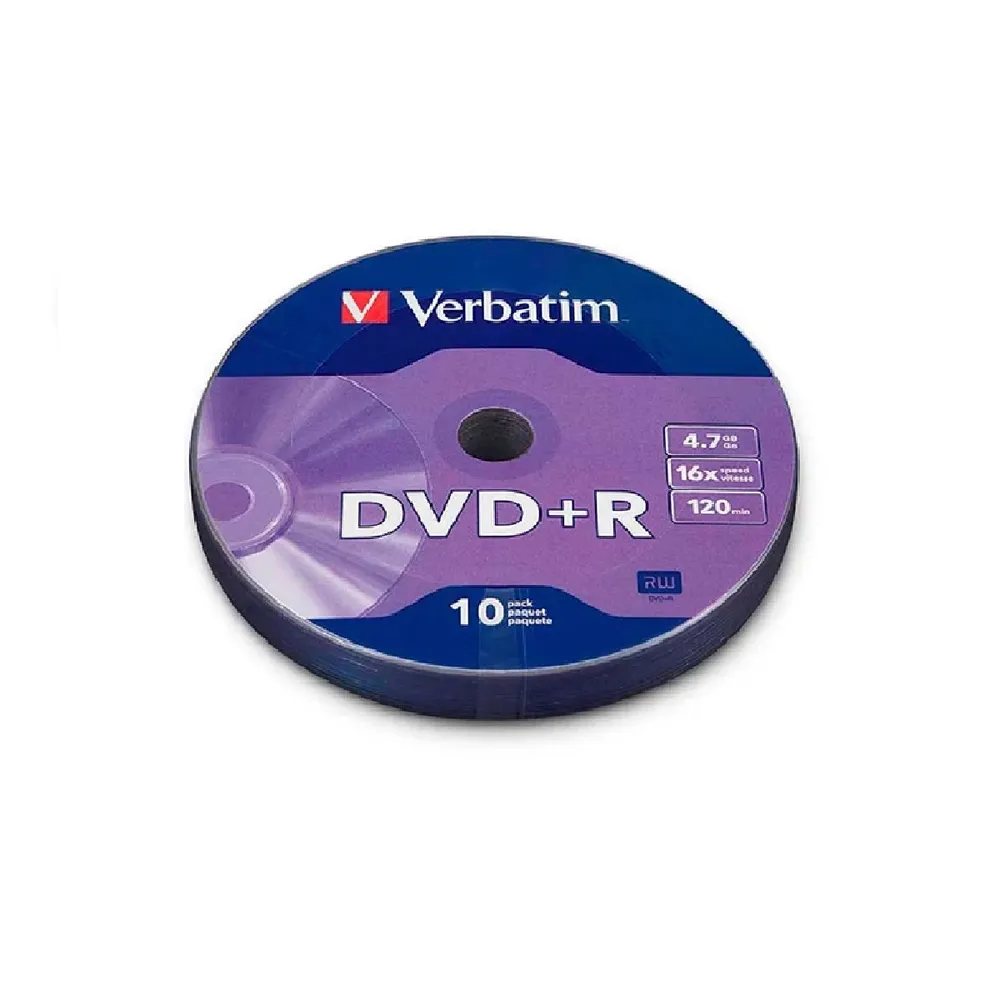 DVD+R Verbatim | 4.7GB | 16X | 120Min | 10 piezas | Alta Calidad