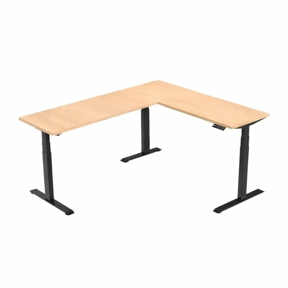 Escritorio En L de Altura Ajustable Madera Clara con Negro | Tipo Escuadra | 180 x 150 cm