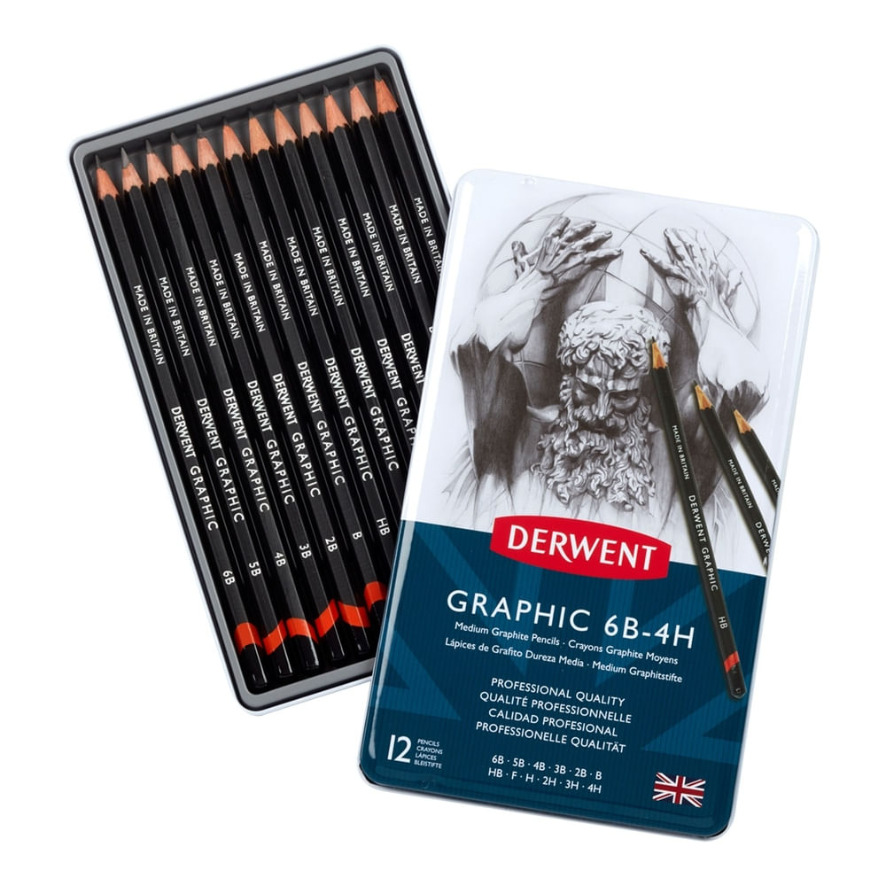 Lápices de Grafito Medio Derwent Caja Metálica 12pzs
