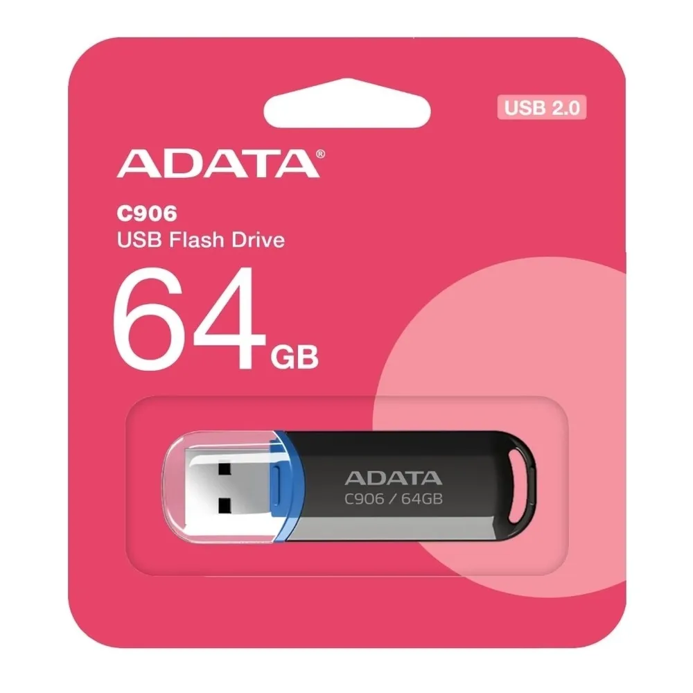 - Memoria USB ADATA C906 de 64 GB solución práctica y confiable para almacenar, transferir y respaldar archivos importantes como documentos, fotos, música y videos.