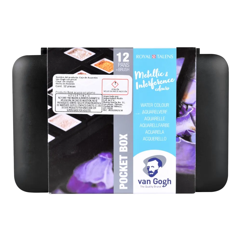Pastillas de Acuarela Royal Talens Van Gogh Colores Metálicos + 1 Pincel 12pzs