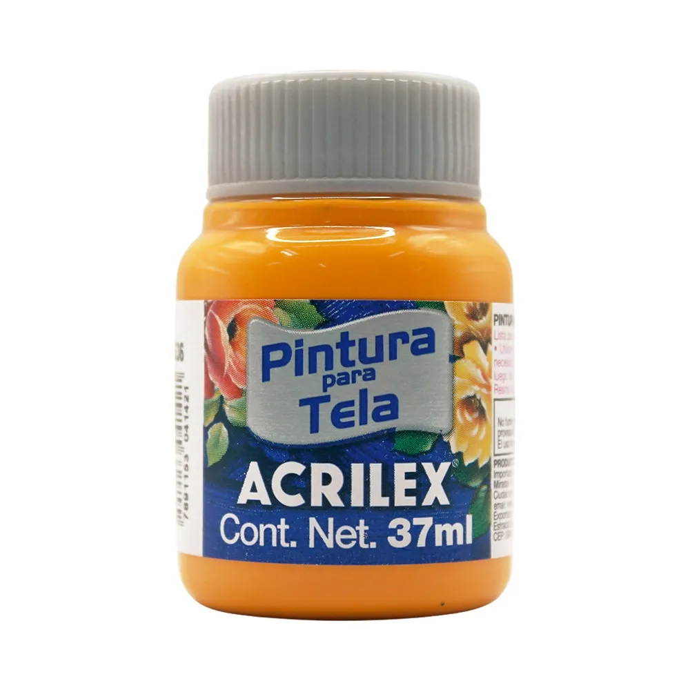 Pintura acrílica Acrilex amarillo cadmio lista para aplicarse sobre tela base agua. Se recomienda aplicar en telas con más de 70% de concentración de algodón. Una vez aplicada no endurece y no se quiebra. Se recomienda aplicar con pincel de cerda natural como el de la Serie 454 de Condor para penetrar el tejido. Para evitar decoloración, se recomienda pre lavar la pieza y una vez seca, aplicar la pintura y dejar secar mínimo 24 horas para una mejor fijación.