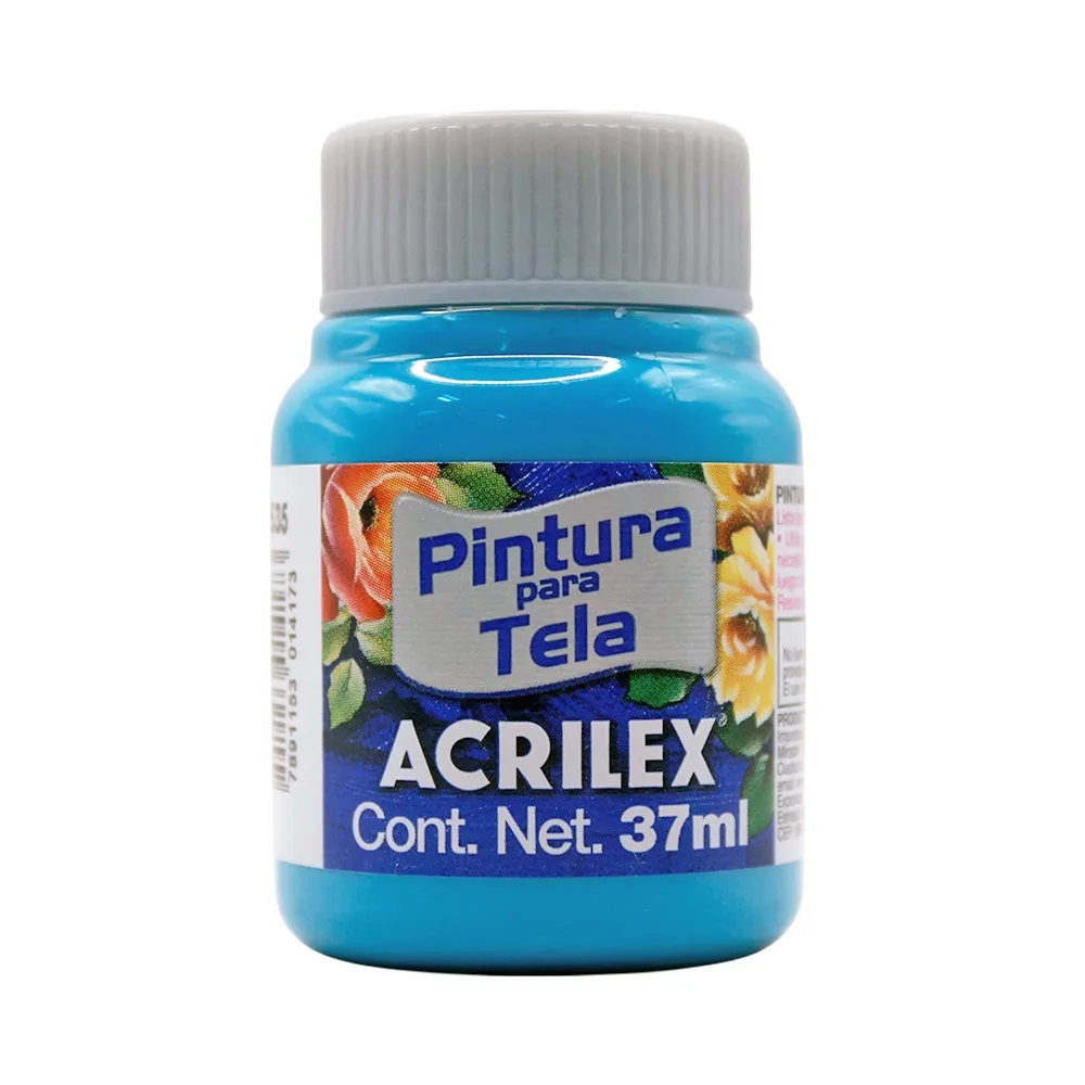 Pintura acrílica Acrilex azul mar lista para aplicarse sobre tela base agua. Se recomienda aplicar en telas con más de 70% de concentración de algodón. Una vez aplicada no endurece y no se quiebra. Se recomienda aplicar con pincel de cerda natural como el de la Serie 454 de Condor para penetrar el tejido. Para evitar decoloración, se recomienda pre lavar la pieza y una vez seca, aplicar la pintura y dejar secar mínimo 24 horas para una mejor fijación.