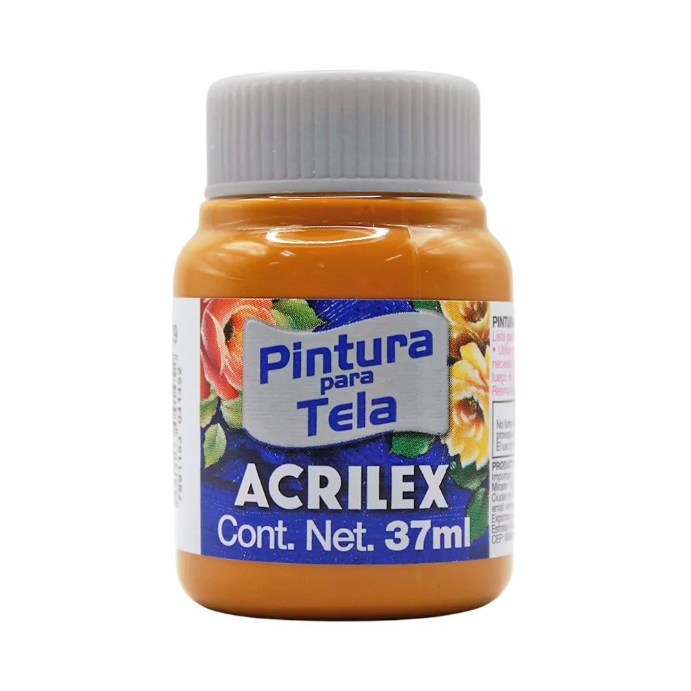 Pintura acrílica Acrilex siena natural lista para aplicarse sobre tela base agua. Se recomienda aplicar en telas con más de 70% de concentración de algodón. Una vez aplicada no endurece y no se quiebra. Se recomienda aplicar con pincel de cerda natural como el de la Serie 454 de Condor para penetrar el tejido. Para evitar decoloración, se recomienda pre lavar la pieza y una vez seca, aplicar la pintura y dejar secar mínimo 24 horas para una mejor fijación.