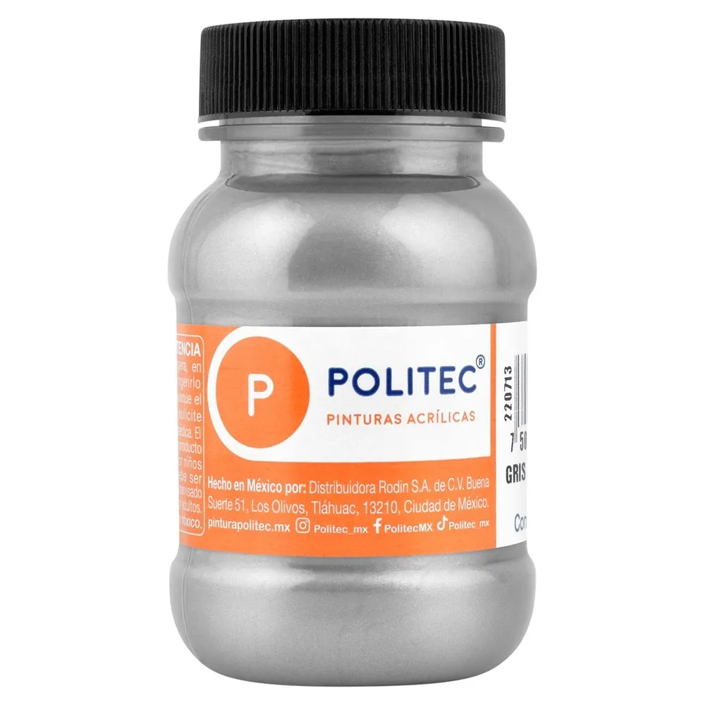 - Acrílico Politec L-500 Gris Metálico 100 ml Pintura acrílica metálica con acabado brillante ideal para decoración artística.