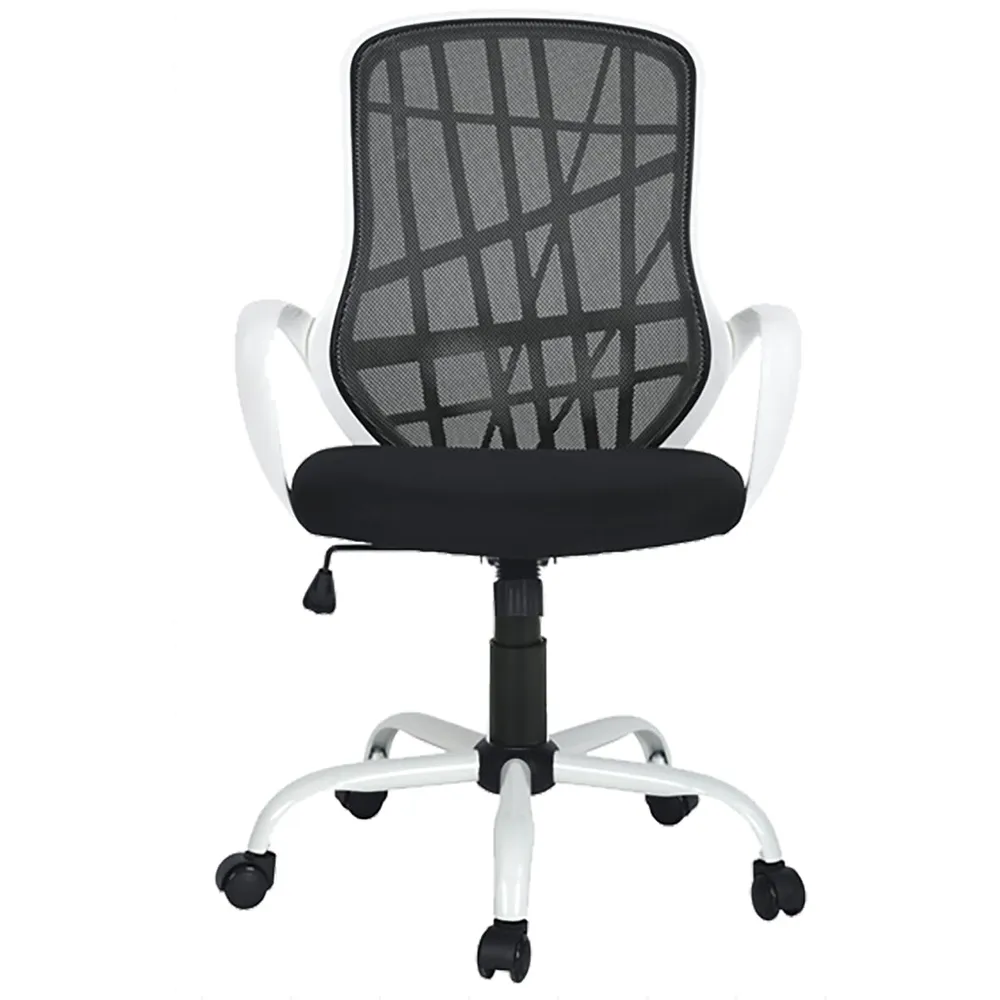 Trabaja cómodamente en la silla ejecutiva Mumbai, su estilo trendy de estructura blanca y tapizado en nylon con respaldo en malla negra combinará perfecto en tu hogar u oficina.